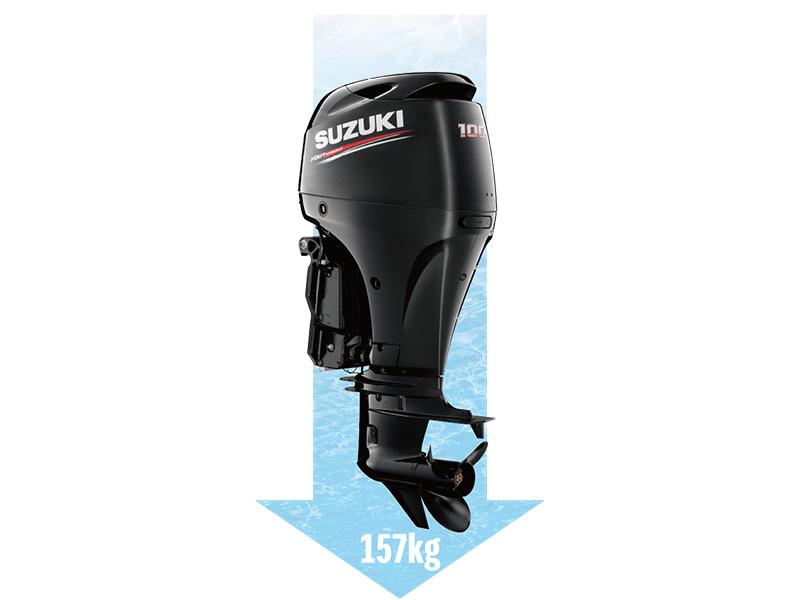 由于铃木2级传动减速可提供较大的扭矩,船外机能够驱动大直径螺旋桨。铃木设计了一种利用此扭矩优势实现更快加速和更高最大速度的新型高效螺旋桨。