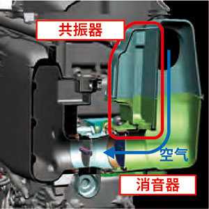 ■ 采用共振器降低进气噪音,从而使船外机的运行更加安静。
