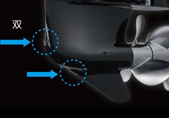铃木双螺旋桨系统可在一台发动机上推动螺旋桨以相反的方向旋转。装有六只叶片,划水效率更高。