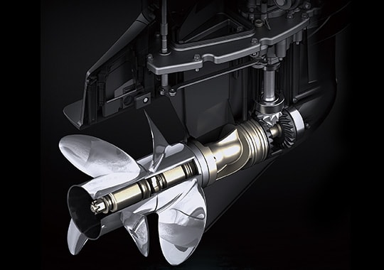 双螺旋桨系统有效地将马力输出转化为水下推进力。该系统的另外一个优势是,因为每个螺旋桨旋转的方向不同,所以获得了无与伦比的稳定性。此外,对转螺旋桨可产生强大的反向推力。