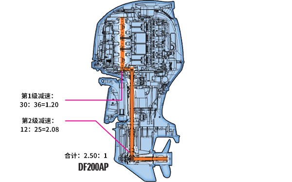 发动机泵头的位置靠近前部,从而将船外机的重心前移。