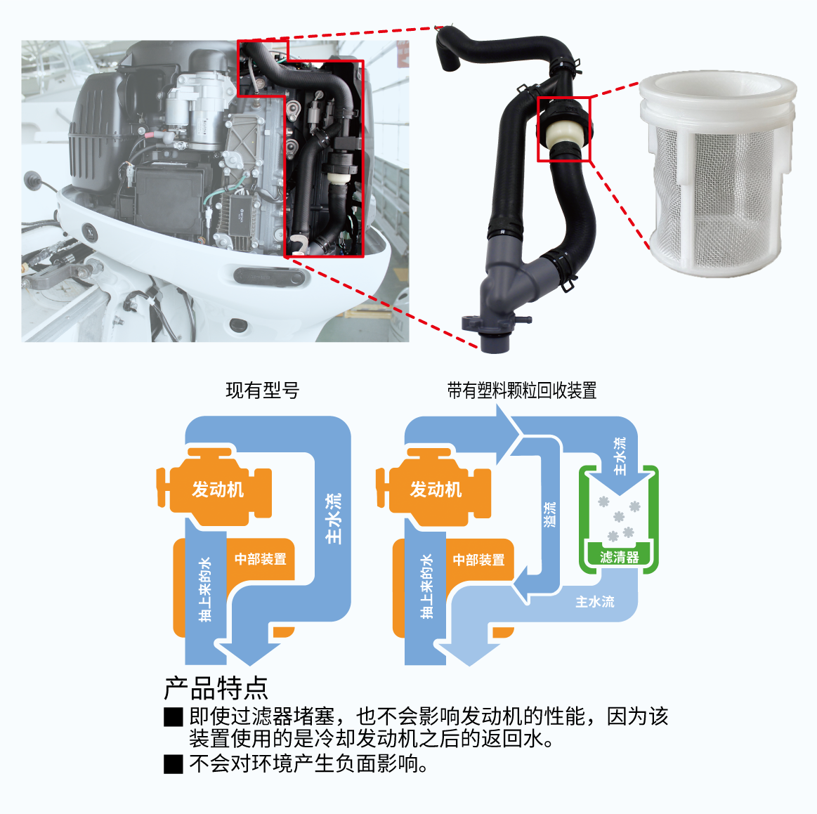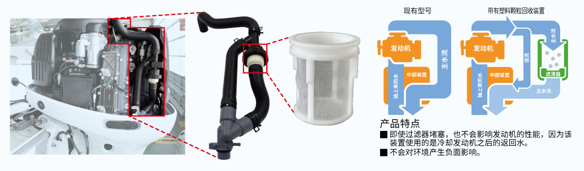 作为一种解决方案,铃木开发了世界上首款安装于船外机的塑料颗粒回收装置,用于回收在陆地上无法妥善处理而流入海洋的塑料。